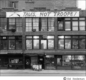 I’m very lucky in my search for other opinions. One of the programs of the A. J. Muste Institute is to provide below-market rent for organizations that share our mission. The building at 339 Lafayette Street (nicknamed “The Peace Pentagon”) is home to the War Resisters League, the Socialist Party, the Libertarian Book Club, the New York Chapter of the Women’s International League for Peace and Freedom, the Metropolitan Council on Housing, Paper Tiger TV, Deep Dish TV and others. Just going to the bathroom in this building can involve you in a political discussion more intense than you’ll see on your television.