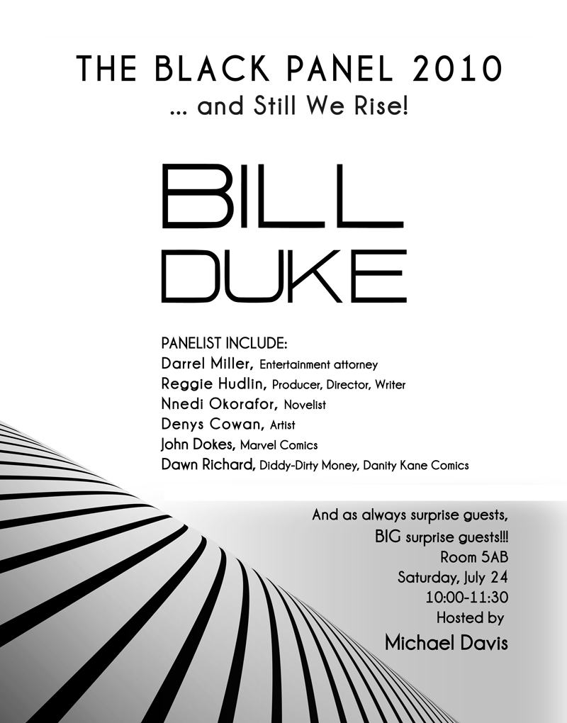 The Black Panel is NOT a forum for just Black People, it’s a forum about Black Entertainment and who is doing notable work in film,TV, comics, music, etc. The secondary focus ( just as if not more important) is to reach out to as many young creators of color ( and all young creators who strive for a way in) and give them access to those who have made a contribution.