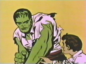 The Marvel cartoons from 1966 were a big disappointment for me when I first saw them, and to this day, I’ve never warmed up to them. Even as a 12-year-old, I recognized that they were a cheap substitution for real animation — such as the Warner Brothers (Bugs Bunny, et al) and MGM cartoons (Tom & Jerry, et al) from the 1940s and 1950s (which aired as re-runs concurrently with the Marvel cartoons on 1960s TV).