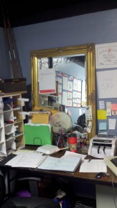 In the far left corner are two tribal spears. Once upon a time, we used to use them as decoration in the venue. I have no idea what we were thinking. Now, I keep them in the corner of the office as a silent threatening mystery to assist me in troublesome meetings.