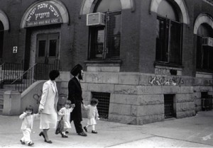 Borough Park is a neighborhood populated, in large part, by Hasidic Jews. More Orthodox than any of the Jews with whom I grew up (many of whom were Orthodox), they can be easily identified because they dress to be easily identified – the men in black hats, beards (and maybe side-curls), black clothing and tefillin. The women wear wigs,sometimes hats, long skirts, long sleeves and stockings. In the summer heat we’ve been having, there is no mistaking their devotion.