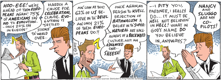 Morons transcend evolution, Rick. Some get all addlepated from drugs and/or booze. Some from gamboling. Some from sex. Some from money. Some from religion.
