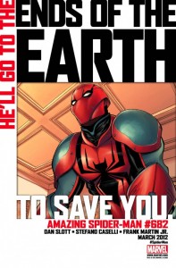 For those who follow my articles over on ComicMix, it should come as no surprise to see me start in on this spidey-book. For those who don’t follow me over there… shame on you. But I digress. Recently it came to pass that I’ve grown weary of DC, and wanted to expand my horizons to Marvel. Admittedly, I’ve never been a ‘Marvel Zombie’. I steer clear of their epic crossovers. I merely dip my toe into their waters, tepidly, to partake of very specific books. Given the track record of Fantastic Four/FF, and Invincible Irons Man, I decided to take the plunge into Spider-Man’s repertoire. What did I have to lose aside from a few bucks? Given that the series has a pretty “noob” friendly arc starting with issue #682, I’ve hopped aboard. Suffice to say, I’m glad I did.