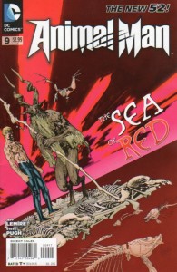 The shine is off the apple; The New 52 isn’t really new anymore. Now that the dust has settled, and books are beyond their initial launching arc… It’s time we really start sorting the curd from the whey. Lucky for all of us, Animal Man is curd-ee-licious. Issue #9 launches a new arc, “Extinction Is Forever”, written by continual series scribe Jeff Lemire. Art chores are no longer in the funky pen of Travel Foreman though. The far more detailed Steve Pugh sets to leap from what was done before him, but still find his own unique voice. The book is sharp, quick, intelligent, and not the least bit “weird for weird’s sake”. Amongst the pile of DC schlock hitting the stands these days, Animal Man (and it’s sister book Swamp Thing) is one prize winning pooch of a book.