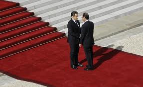 Newly-sworn-in French President Francois Hollande flew to Germany for a political blind date facilitated by French voters. In what might be quadruple harbingers of things to come, he was soaked to the skin from a thunderstorm and caught in a traffic jam during his convertible victory lap, his plane was struck by lightning which forced a return for a smaller one, and he arrived late for the state dinner where baby cow was served. German Chancellor Angela Merkel is known to have been happily matched with the ousted French President Sarkozy so closely that they had a Hollywood-styled smashup name “Merkozy”. Now, she will be joined to a candidate who pledged to dismantle what arguably might be her crown-ing accomplishment: the EU treaty to curb government ‘overspending’ in favor of austerity.