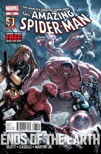Welcome back friends and foes alike. I can hear your cranky retorts already. “Didn’t this lazy jerk already review Spider-Man… like a month ago?” … Yup. But my pull list this week included books I’ve also reviewed. Given that knowledge, combined with the fact that “Ends of the Earth” concluded with issue 687, I figured I’d go beyond just a single issue review—and leave some thoughts regarding the arc as a whole. See? Now it’s totally worth your time. And SPOILER ALERT, I’m not a happy camper like I was last time. Marc being pissy? Oh yeah, you’re in for a treat.