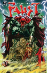 Another smart suggestion and an approach I trust, too. Tim Vigil and I knew the core of our story ending long ago, though I’d be lying if I said we knew exactly what long, strange plot path we would take to get there. The original big-bang ending was written in 1996, but that final chapter, then called Faust Act 12, grew exponentially to be published as Acts 12-15. Tim drew the original version of the tale’s ultimate page decades, but the scenes/images/dialogue leading up to that were some of the last changes we worked through, both encouraging each other to make the story, both words and pictures, earn its own conclusion, with all the diverse characters and conflicts coming to the right resolution. That’s where the storyteller’s work resides, most times, and why so many plots that begin well drag a bit, sometimes even getting completely lost, between the middle and…