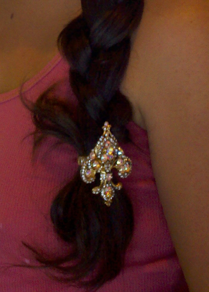 Image of a fleur-de-lis ring that I put on the end of a braid that I did for one of the young Gypsy women who came with us to the train station to say goodbye, courtesy of my cell phone.