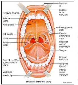 Image of anatomy of a mouth, courtesy of acm.uicu.edu .