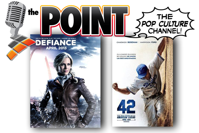 The buzz on the massive third-person shooter video game and TV show, DEFIANCE, has been generating for almost a year. Now with the premiere days away (Monday 4/15 on SyFy), we get more details from the set, by way of actress Julie Benz (“Amanda”) . Also 42 THE TRUE STORY OF AN AMERICAN LEGEND opens in theaters this week, and breakout star, Chadwick Boseman along with Harrison Ford, talk about how they helped bring Jackie Robinson back to life. Oh yeah, and another good month in the comic stores – thanks to Marvel!