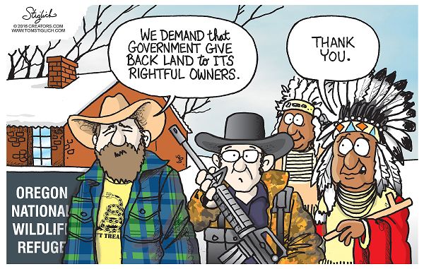 There are more serious stories in the news this week, but I have been enthralled watching what is going on in Oregon. As you might know, a group of crazy people took over a bird sanctuary on public park land, claiming themselves to be true patriots. It is my bias to call them right-wingers but, in fact, they are so insane that they defy such categorization.